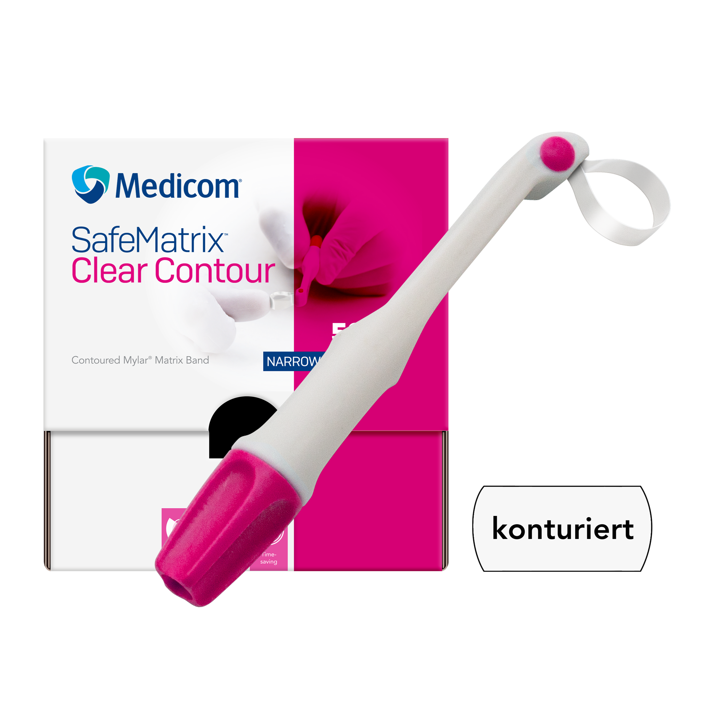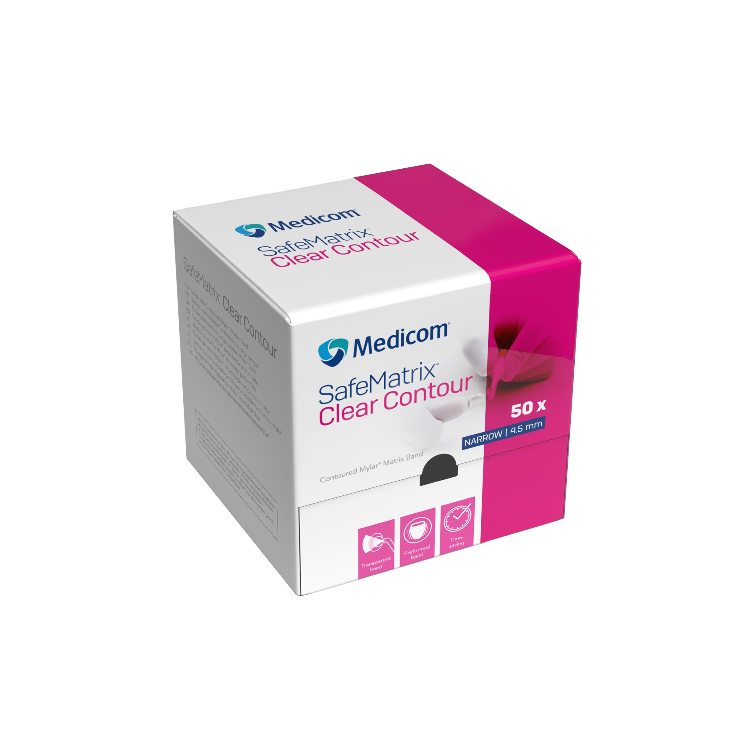 - Transparentna taśma umożliwia przenikanie światła UV podczas polimeryzacji oraz poprawia widoczność materiału kompozytowego