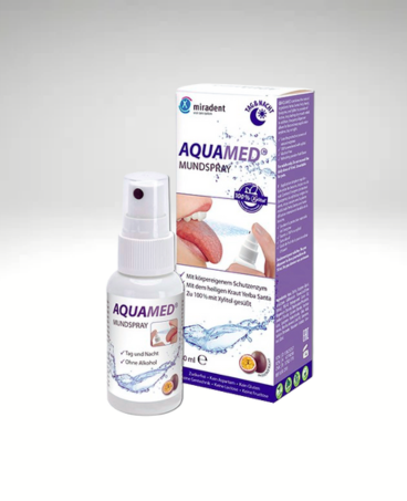 - AquaMED jest w 100% słodzony ksylitolem, który zwiększa produkcję śliny, hamuje osad nazębny i zapobiega próchnicy, ponadto wzmacnia szkliwo
