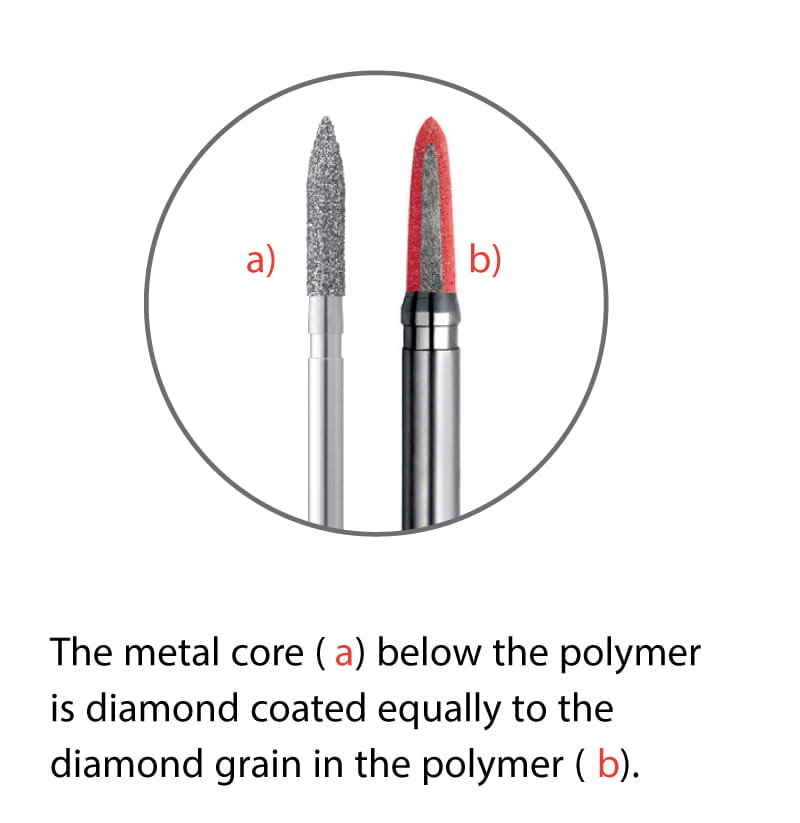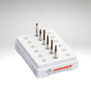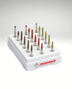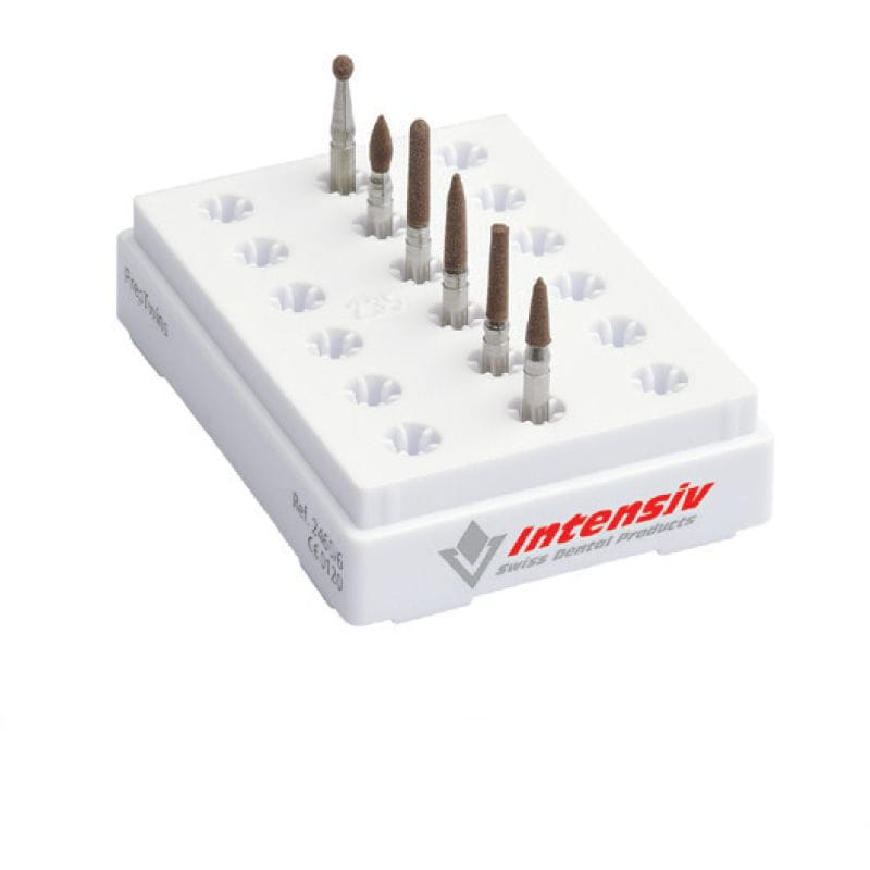 Zalecane obroty 20.000, praca z wodą, min.50 ml /min.rozmiary kształtów: kulka śr.2mm, stożek cylindra 10mm,płomyk 4mm, piłka futbolowa 3,5mm, torpeda 6mm.