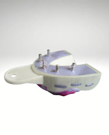 - podczas pobierania wycisku, łączniki protetyczne przechodzą swobodnie przez naprężoną folię, która dokładnie do nich przylega, zapobiegając przedostaniu się masy wyciskowej na zewnątrz i gwarantując precyzyjny i szybki wycisk
