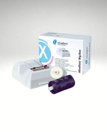 - Pojemnik z dozownikiem i dwoma szpulkami nici dentystycznych, każda po 200 m