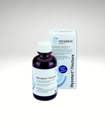 W obliczu rosnącej świadomości, że leki zawierające silnie działające składniki często działają agresywnie na organizm ludzki, Myzotect Tincture stanowi doskonałą alternatywę. Główny składnik „mirra” znany jest ze swoich właściwości wzmacniających i ściągających tkanki, szczególnie w obszarach mocno obciążonych w jamie ustnej i w gardle. Właściwości mirry wspomaga benzoina. Substancja ta wspomaga odżywcze działanie mirry i tworzy warstwę ochronną. Uzupełnieniem substancji jest esencja z aloesu. Myzotect-Tincture skupia opisane powyżej substancje. Dzięki konsystencji syropu, długo przylega do błony śluzowej, odżywia ją i zmusza do samoregeneracji.