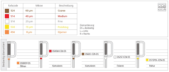 * 6 różnych grubości nasypu : 08 µm stosowany jako piłka otwierająca z ostrzem; 80,60,40,25 i 15µm do redukcji,