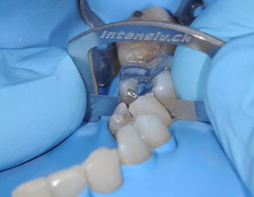 Instrument ręczny do otwierania wąskich przestrzeni między zębami oraz do usuwania nadmiaru wypełnienia