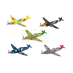- W opakowaniu 50 sztuk samolotów śmigłowych, z barwną grafiką w 5 różnych wzorach