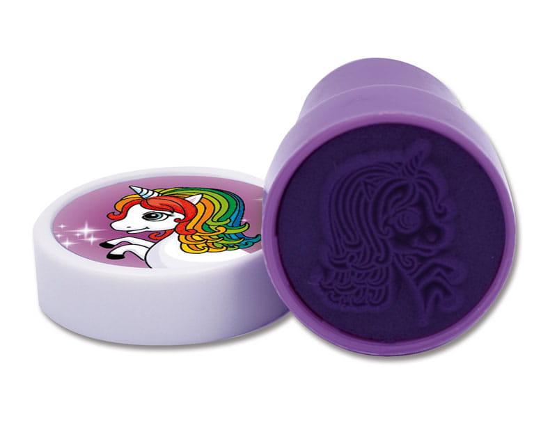 - W opakowaniu 5 różnych stempli z wizerunkiem zwierząt:2x jednorożec, żyrafa, krab i lew