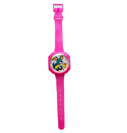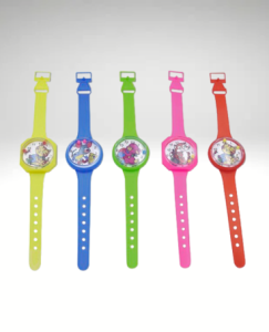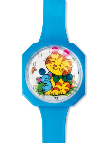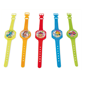 - Kolorowe, plastikowe zegarki na rękę z wesołym motywem