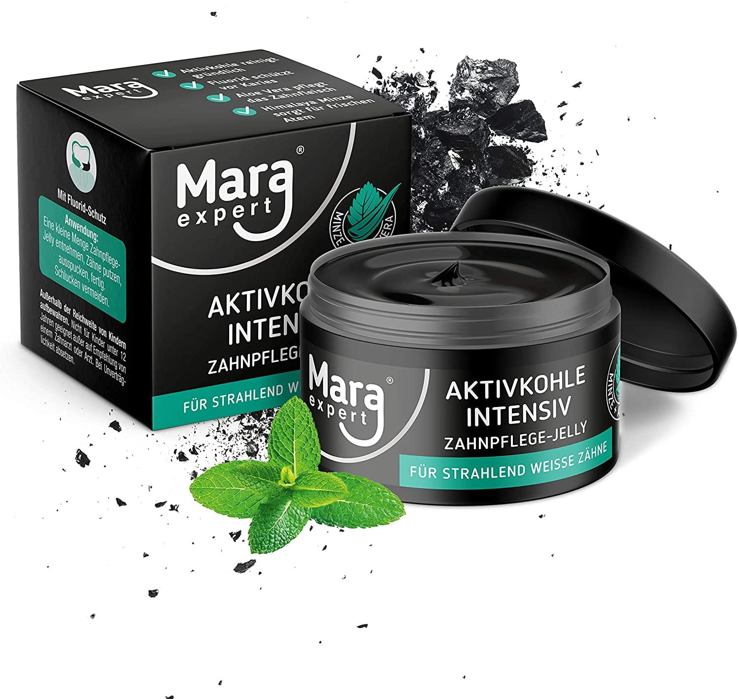 - Żel z aktywnym węglem, o miętowym smaku z aloesem do wybielania zębów